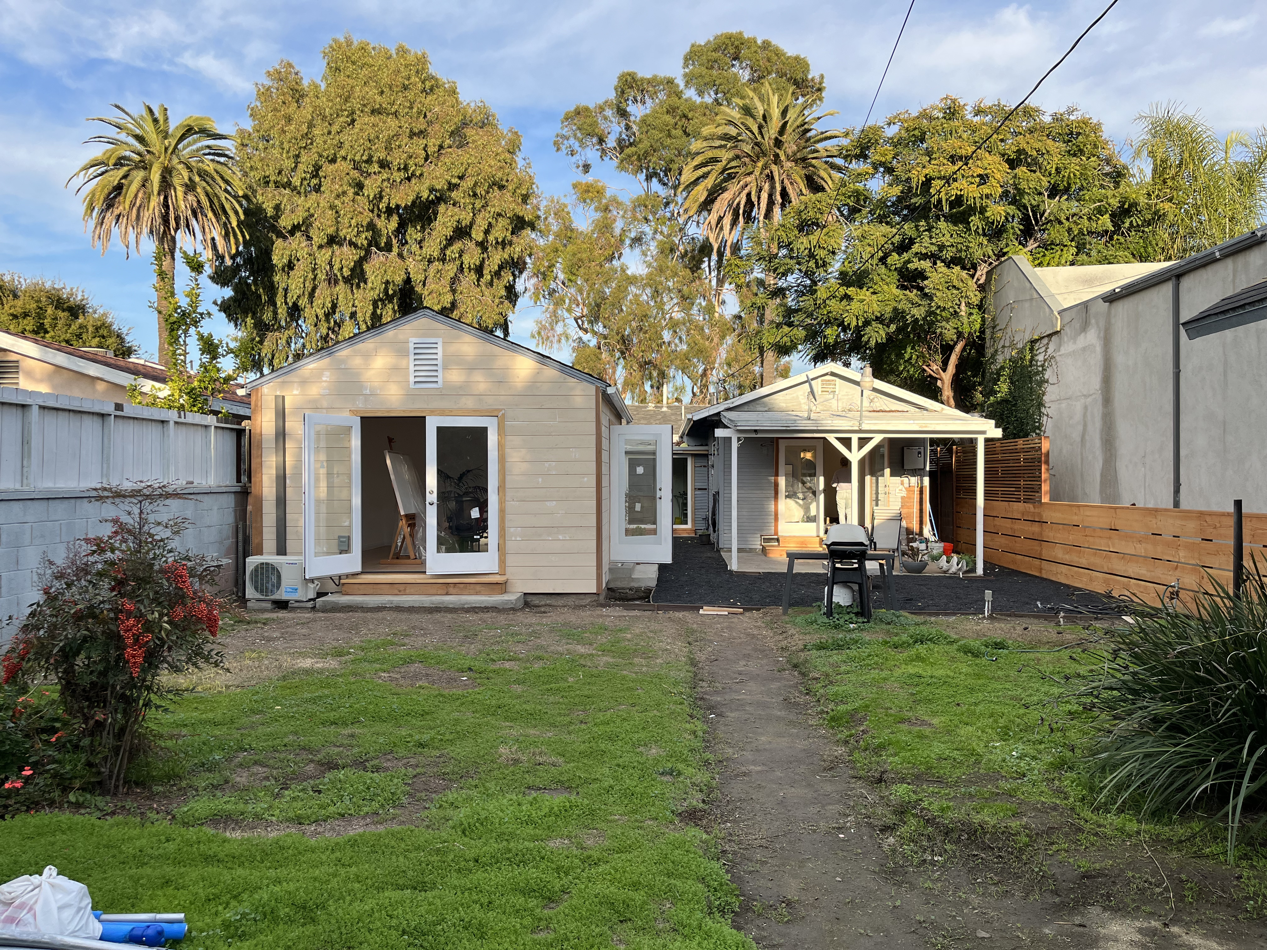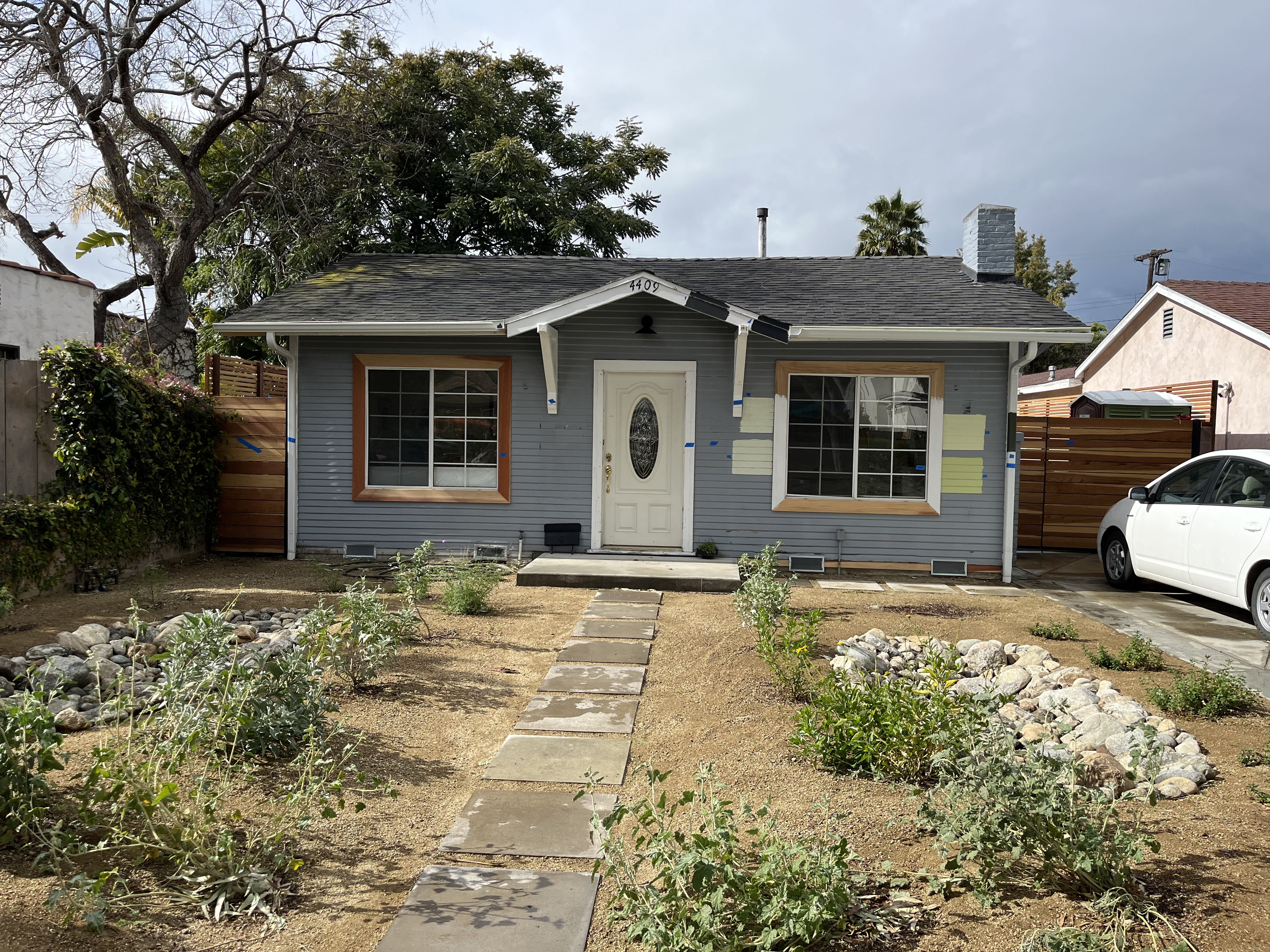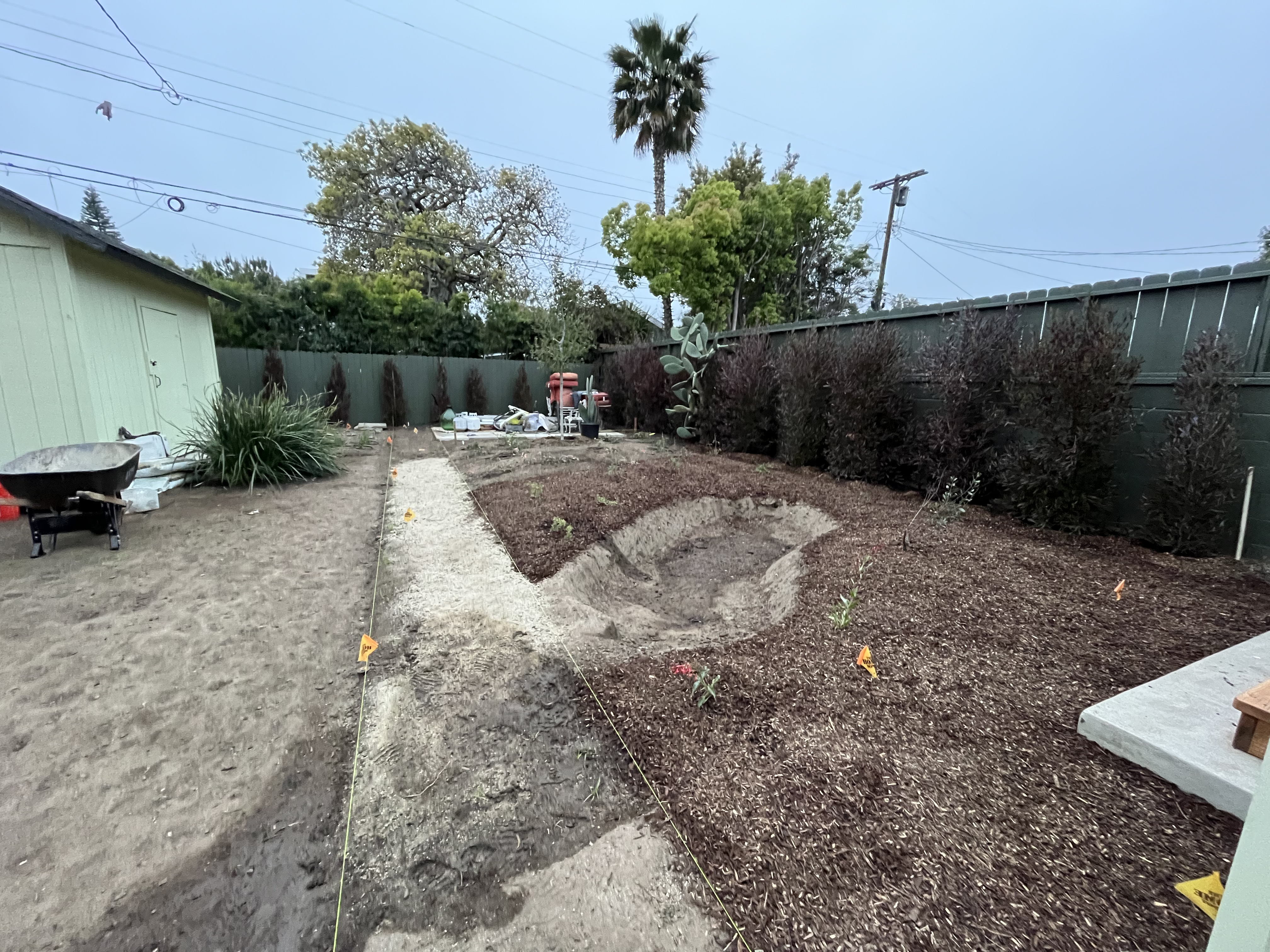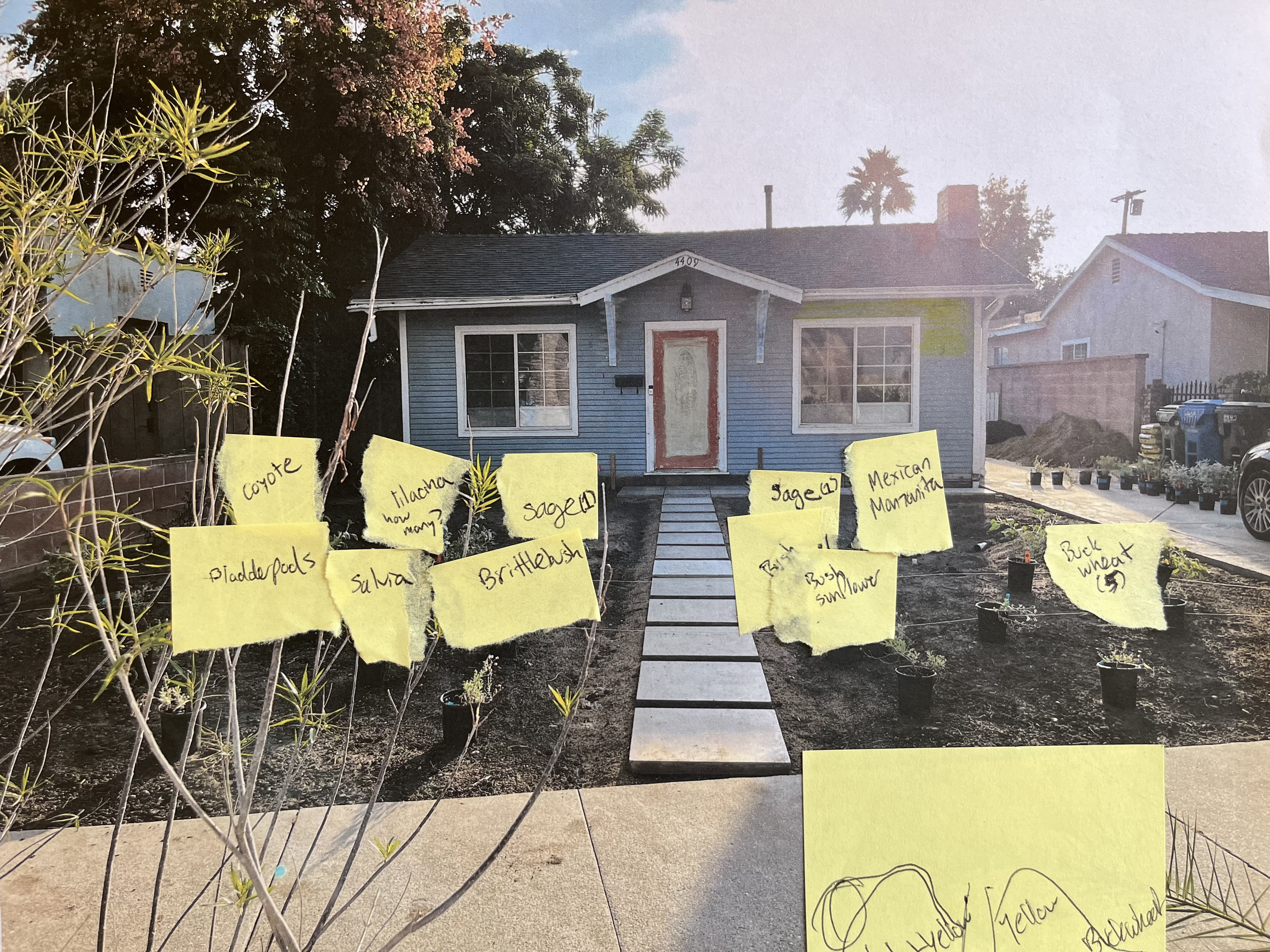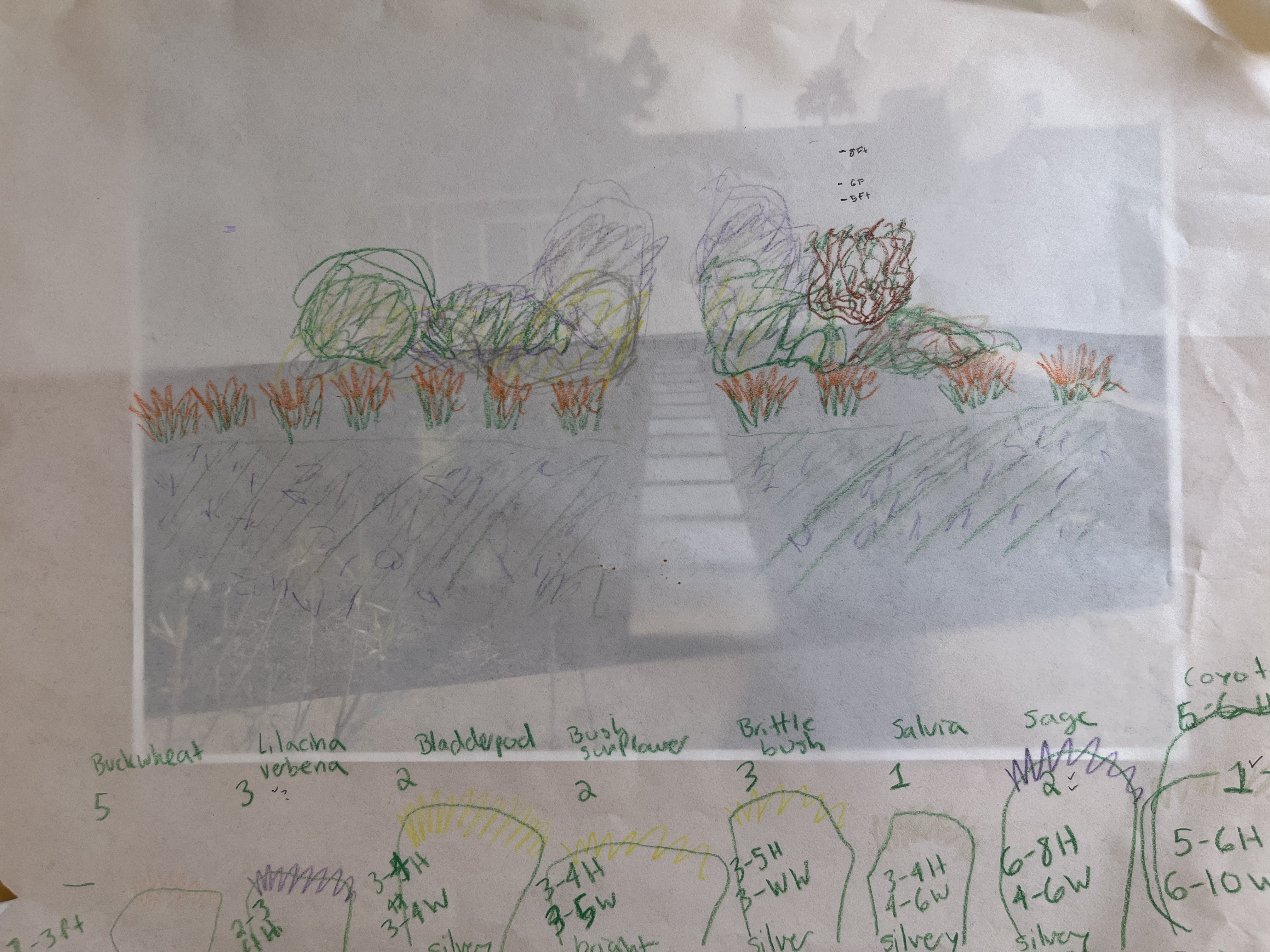 We designed our ‘Chateau Chaparral’ garden to be a wild, colorful, deliciously aromaed coastal mountain living habitat. The goal was to create a habitat for native insects, butterflies, and birds, providing each plant with enough space and nutrients so they can thrive into one collaborative native plant mass to support life. For the humans, there are intentional spaces of rest and relaxation to facilitate enjoyment of the shade, smells, sounds, and visual beauty of the garden. Our aim was to create a calming oasis of relaxation, where animals and humans can find respite and replenishment from the bustling city environment.